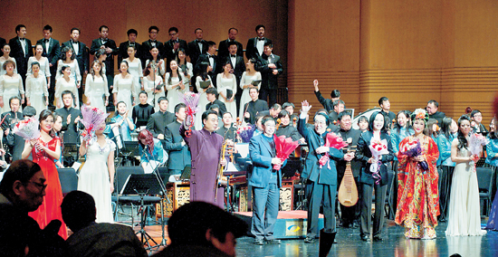 2月12日,中国歌剧舞剧院在北京保利剧院推出了“2012刘文金、刘锡津作品音乐会”。音乐会上,中国歌剧舞剧院民族管弦乐团以及邓建栋、柏淼、林感、罗慧芳、雷靛云、杨文娜、宋扬等演奏家在指挥家刘文金、洪侠的指挥下用饱满的热情和精湛的技艺诠释了他们对刘文金、刘锡津两位作曲家创作的《点染丹青》《戏彩》《连年有余》《鱼尾狮传奇》等作品的深刻理解,让台下的音乐爱好者们领略了民乐的魅力、大呼过瘾。